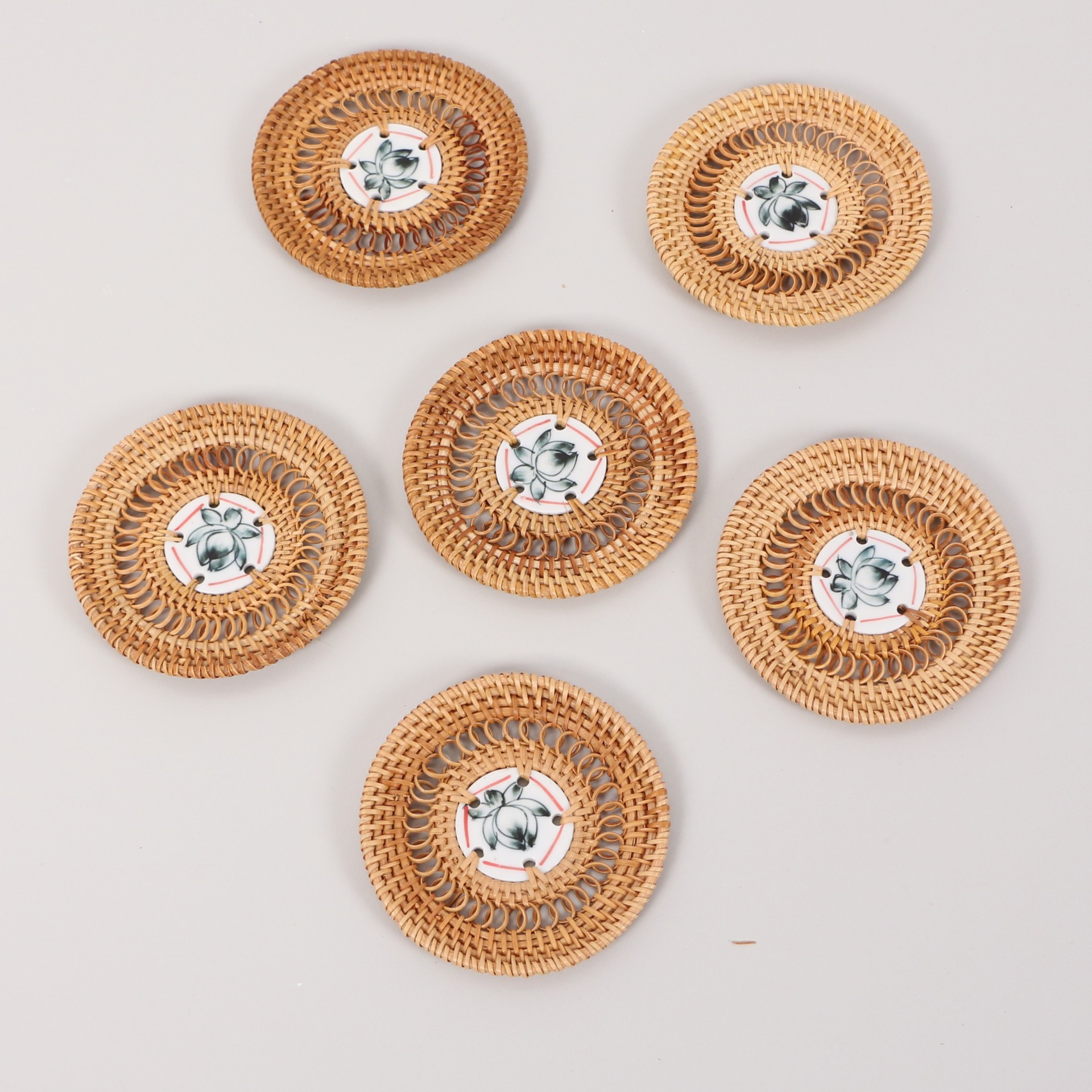 Paket içerisinde 6 adet ince sık dokuma Rattan ve ortası seramikli altlık bulunmaktadır.