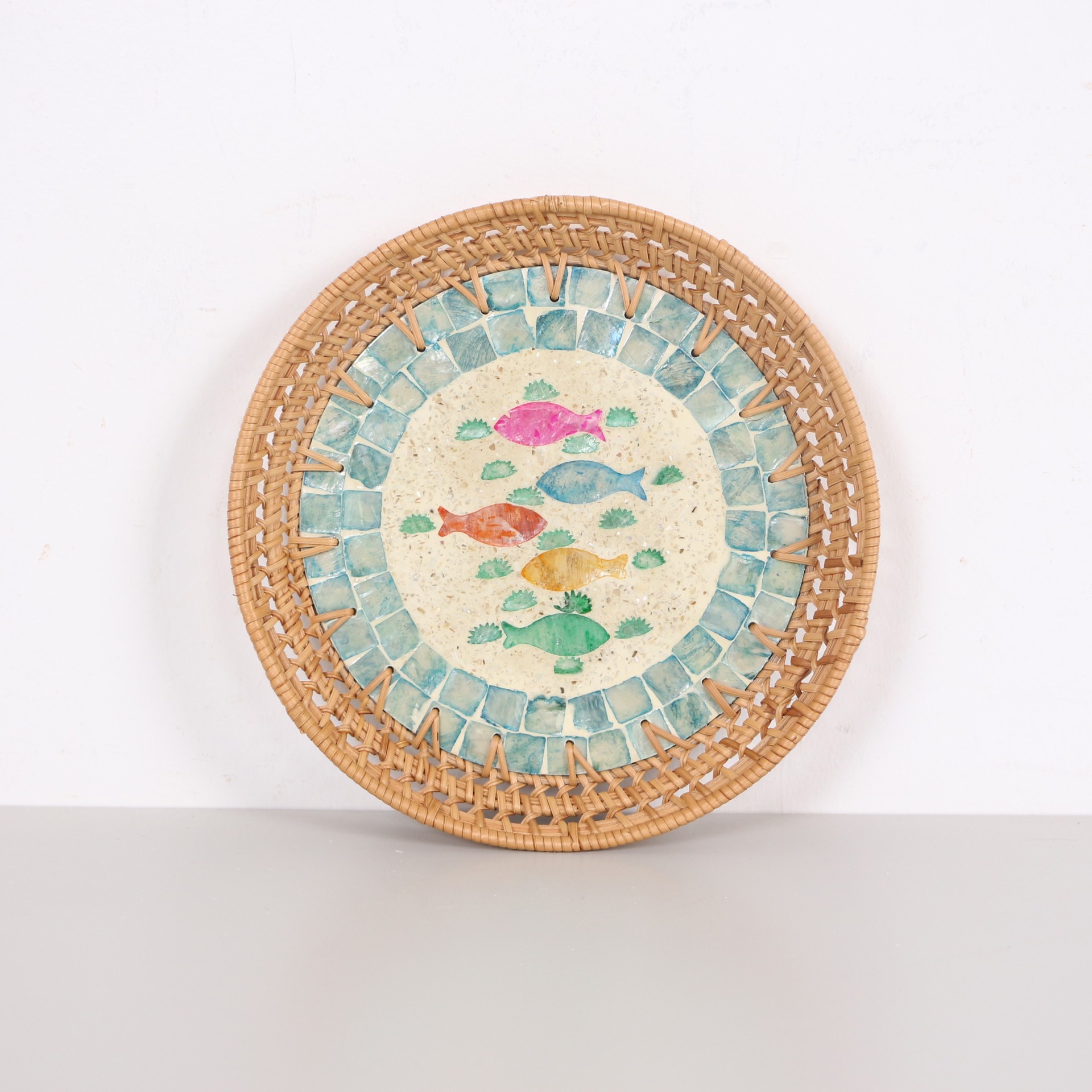 Nakış Rattan Dekoratif Tabak ve Duvar Dekoru 24x3 cm