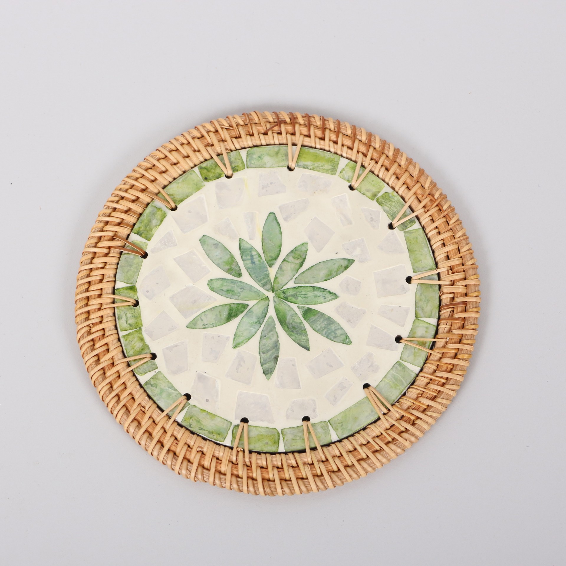 Rattan Çerçeveli 17 cm. Sedefli Nihale & Masa veya Duvar Dekoru