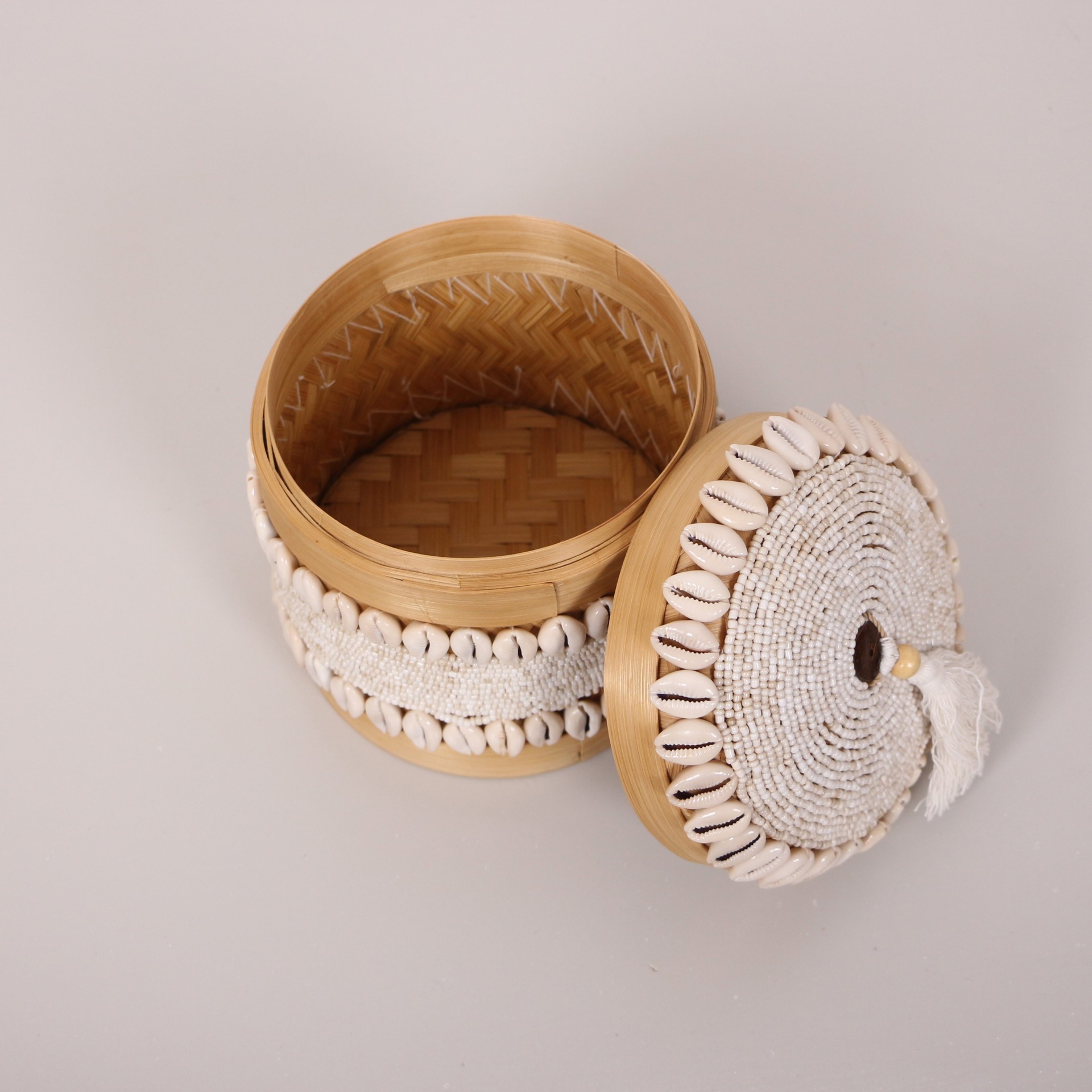 Bali Boncuklu Bambu Saklama Kutusu M 15x17 cm