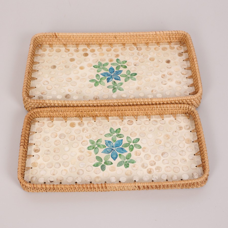 • Doğal Rattan Sedefli 2 li SET Çekmece Düzenleyicisi- Saklama/Düzenleme ve Tepsi olarak kullanabileceğiniz dekoratif ürün.