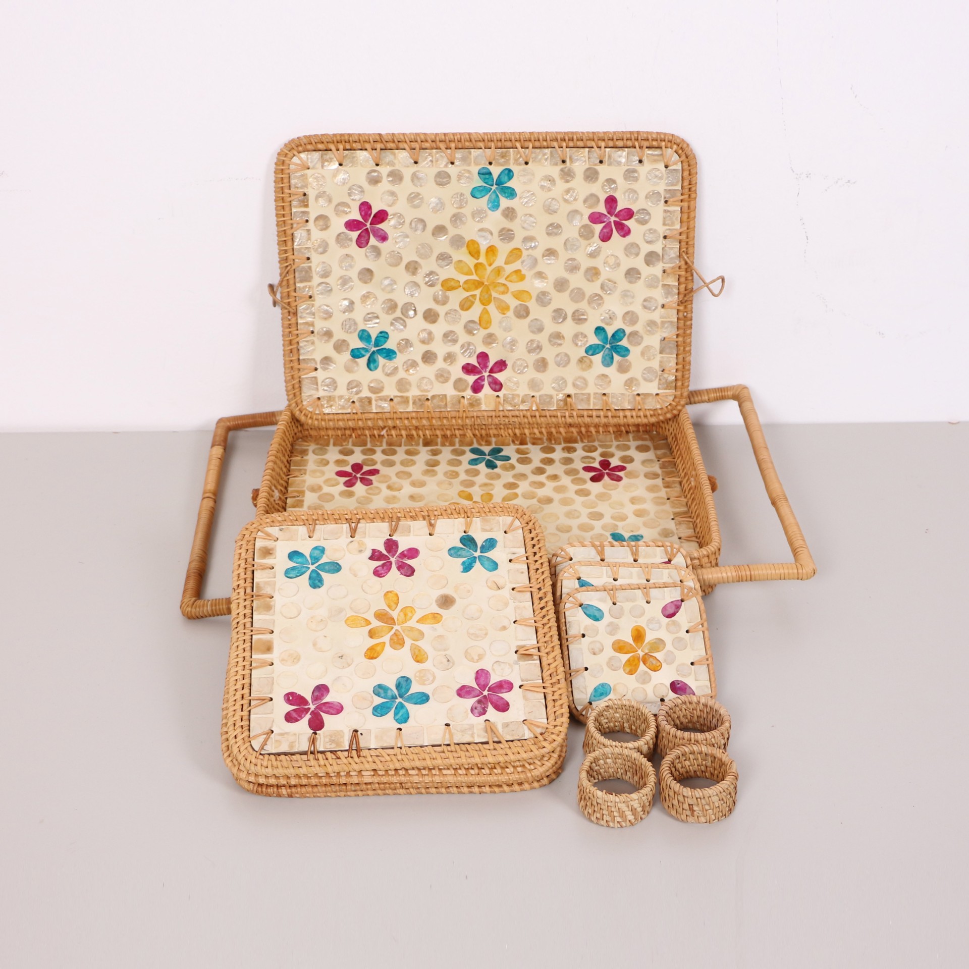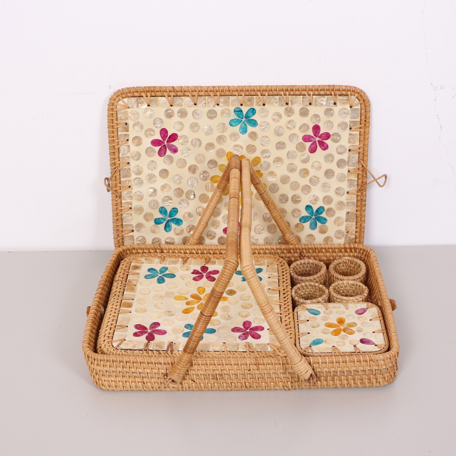 Family Doğal Rattan ve Sedefli Mutak Takımı dekoratif ürün.