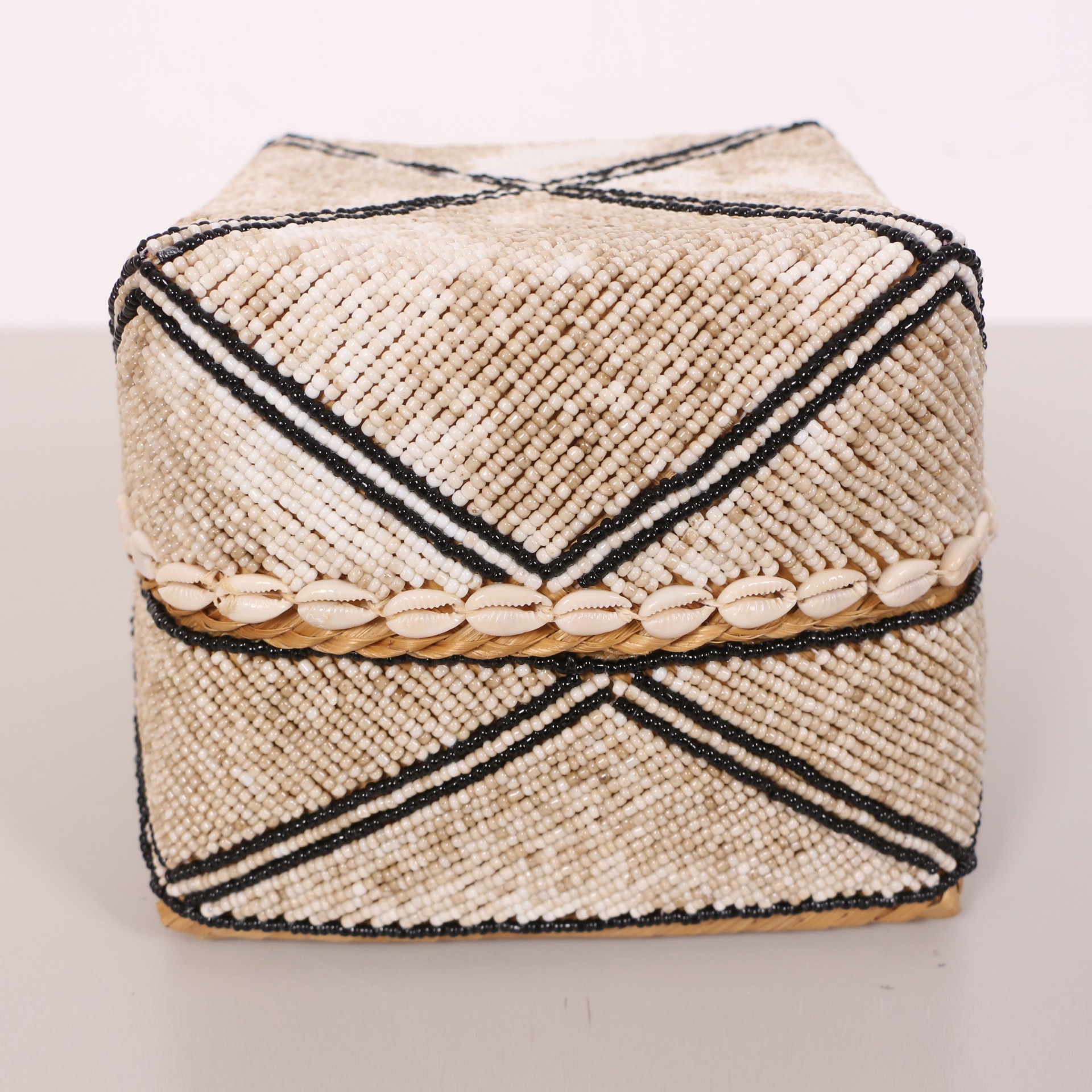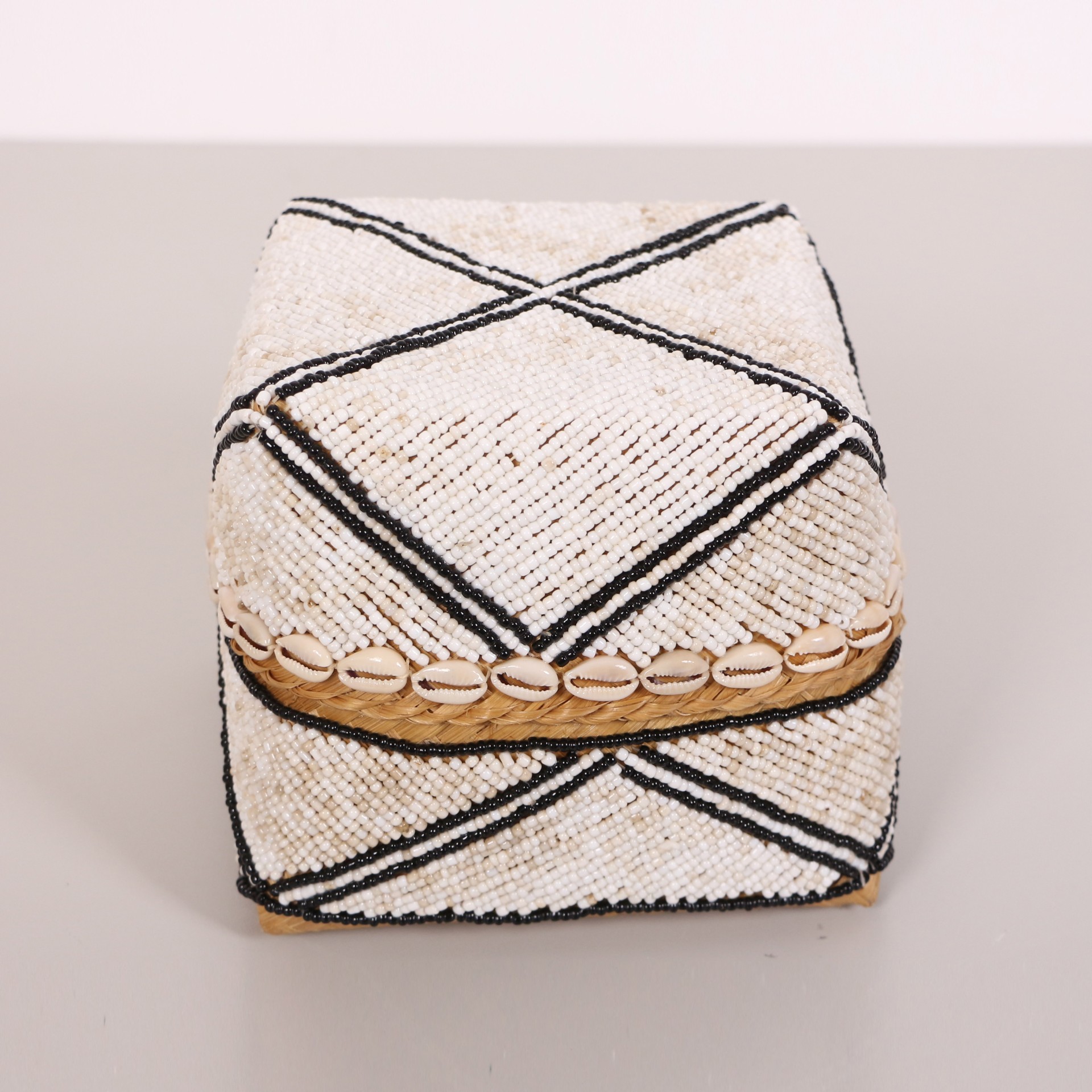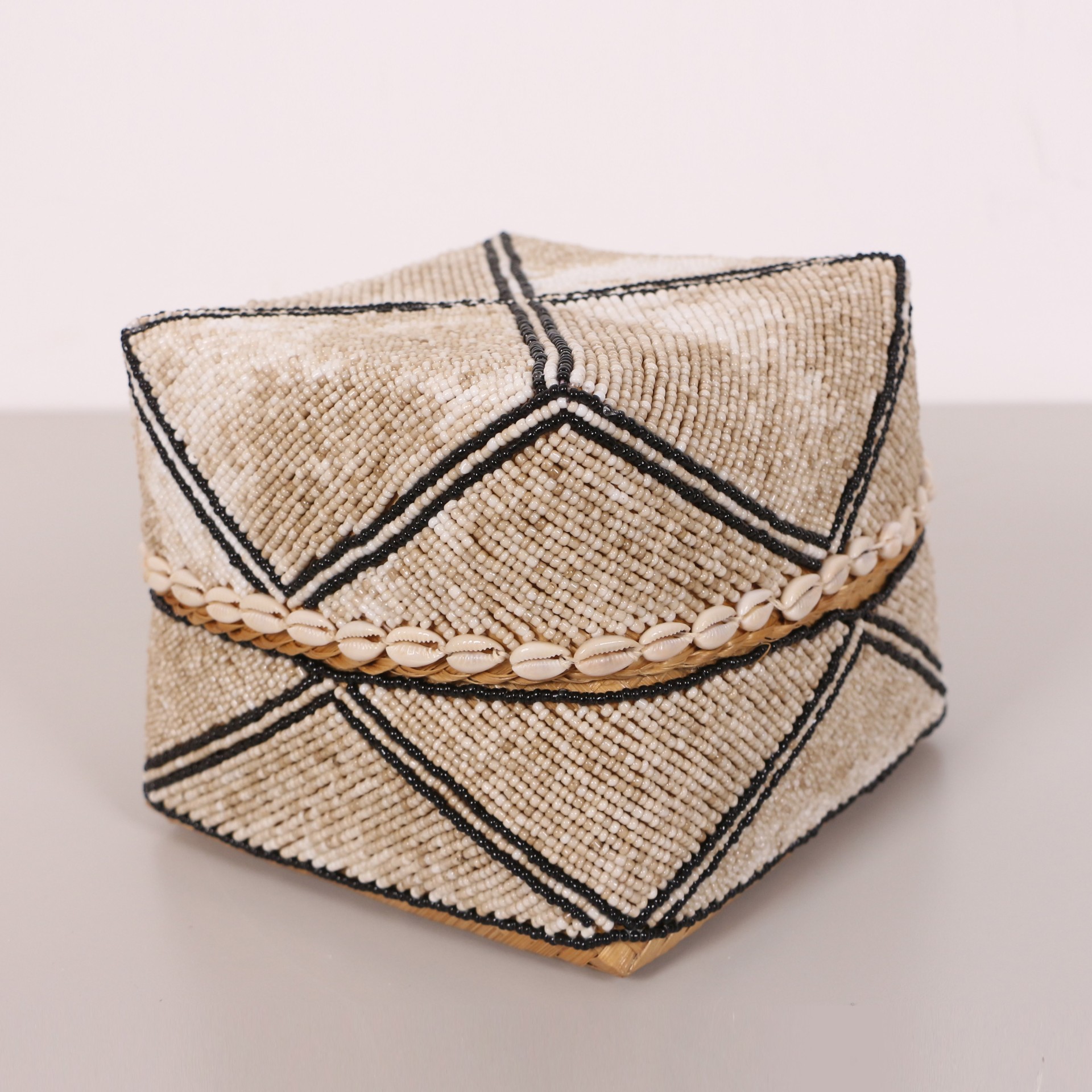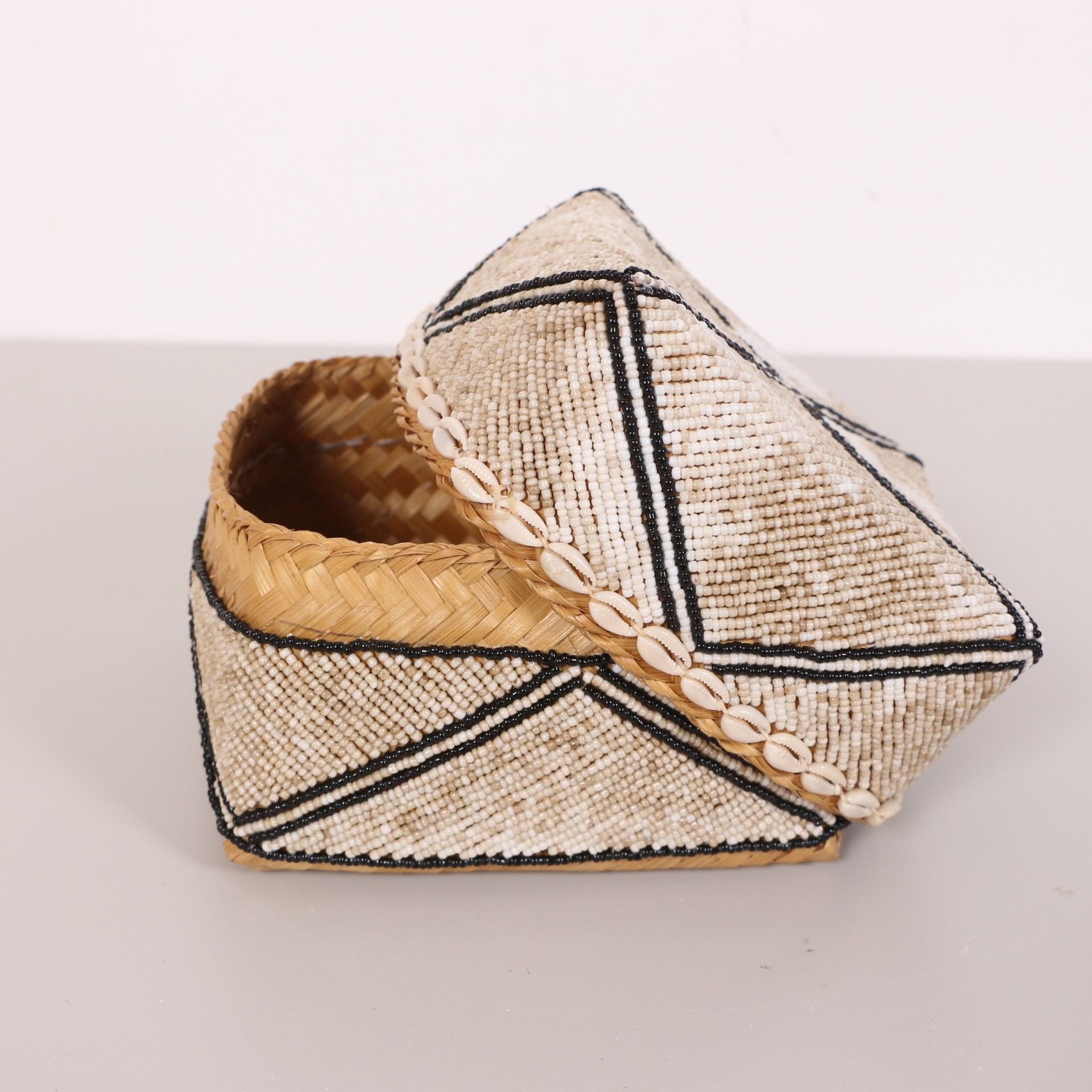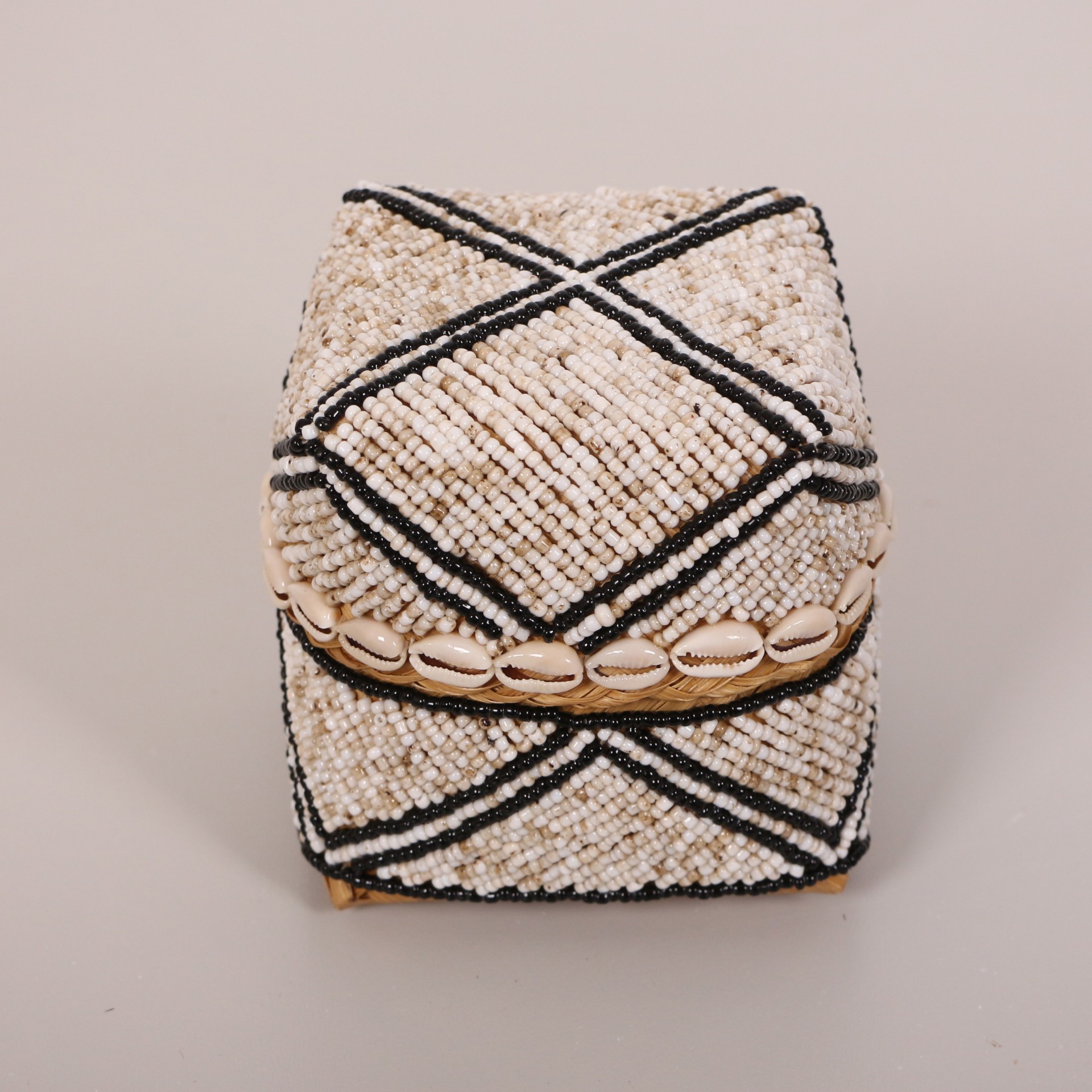 - Doğal Bambunun dış kabuğundan el işçiliği ile örülmüştür. Minik Cam boncuklarla farklı desen ve renklerde bambu kutunun üzerinde el işçiliği ile dekor edilmiştir.