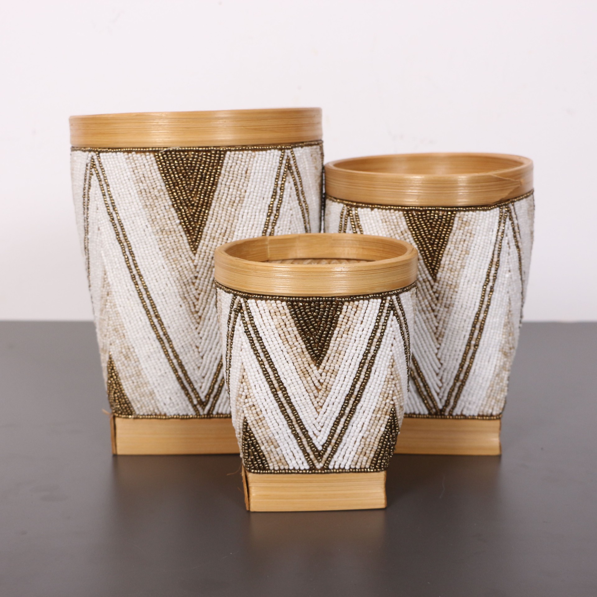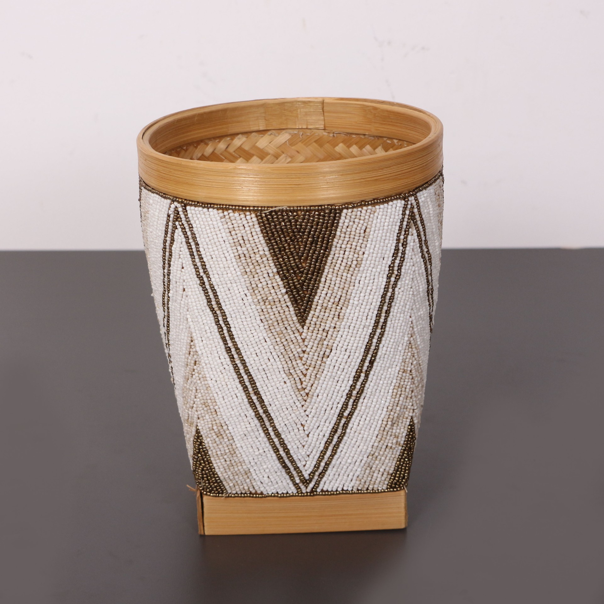 - Doğal Bambunun dış kabuğundan el işçiliği ile örülmüştür. Minik Cam boncuklar ve Deniz Kabukluları ile bambu kutunun üzerinde el işçiliği ile dekor verilmiştir.