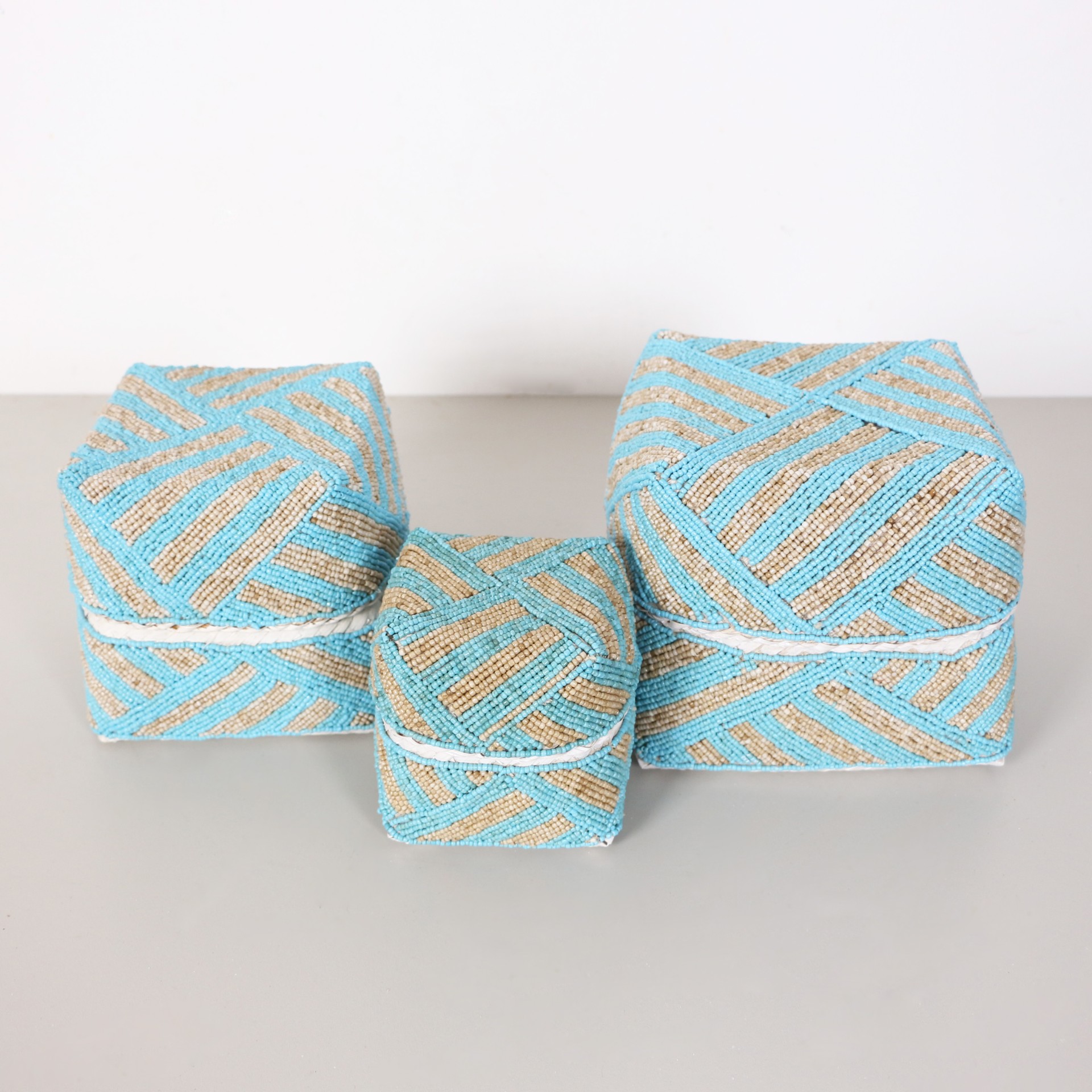 - Doğal Bambunun dış kabuğundan el işçiliği ile örülmüştür. Minik Cam boncuklarla farklı desen ve renklerde bambu kutunun üzerinde el işçiliği ile dekor verilerek, kapak kısmında püskülle tamamlanmıştır.