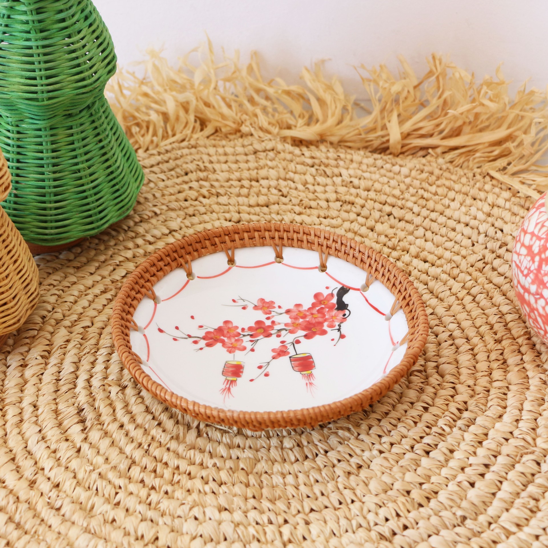 - Ürünümüz el boyaması seramik ve rattan çerçevelidir.