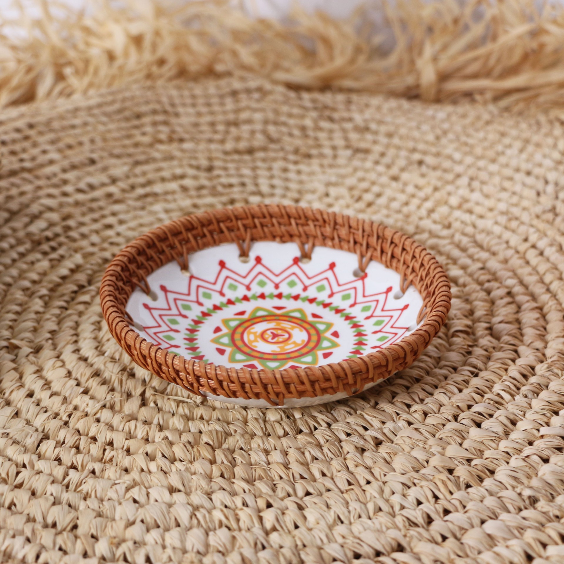 • Ürünümüz el boyaması seramik ve rattan çerçevelidir.