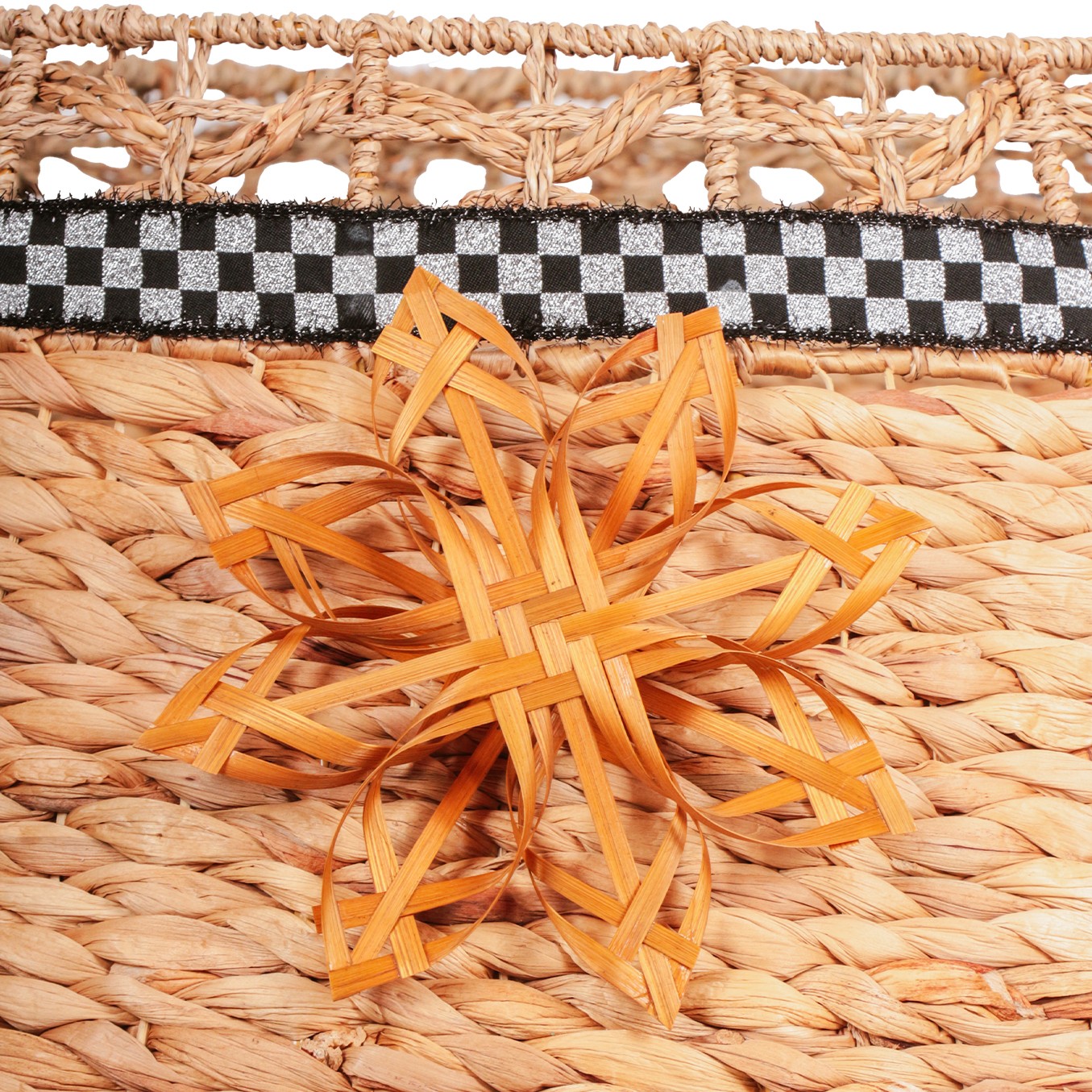 Yılbaşı Ağacı Eteği Yıldız Süslemeli Su Sümbülü ve Deniz Sazı 51×73×28 cm, doğal dokuların sıcaklığını yılbaşı ruhu ile buluşturan şık ve dekoratif bir ağaç eteğidir. Su sümbülü ve deniz sazı el işçiliğiyle örülerek hazırlanan yapısı, her yılbaşı ağacına doğal, organik ve estetik bir görünüm kazandırır. Etek formundaki tasarım, ağacın ayak kısmını gizleyerek daha düzenli ve dekoratif bir yılbaşı atmosferi oluşturur.