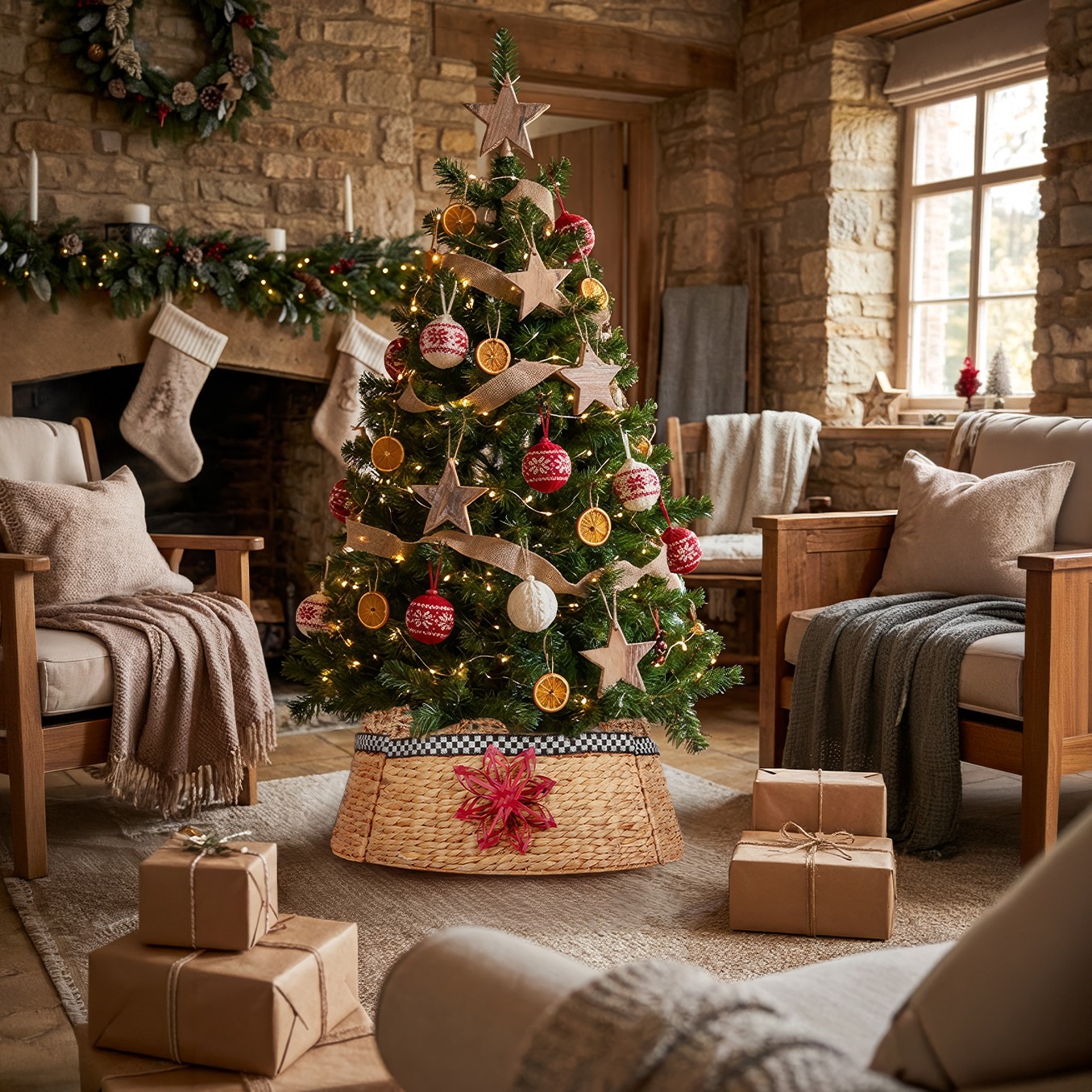 Ürün, yılbaşı ağacının alt kısmındaki görüntü kirliliğini gizler; yılbaşı dekorasyonunu tamamlayan sıcak ve rustik bir dokunuş sunar. Ağaç altı hediye düzenine de düzenli ve bütünlüklü bir görünüm kazandırır. Renk seçenekli yıldız süsü ile kişisel zevke göre özelleştirilebilir.