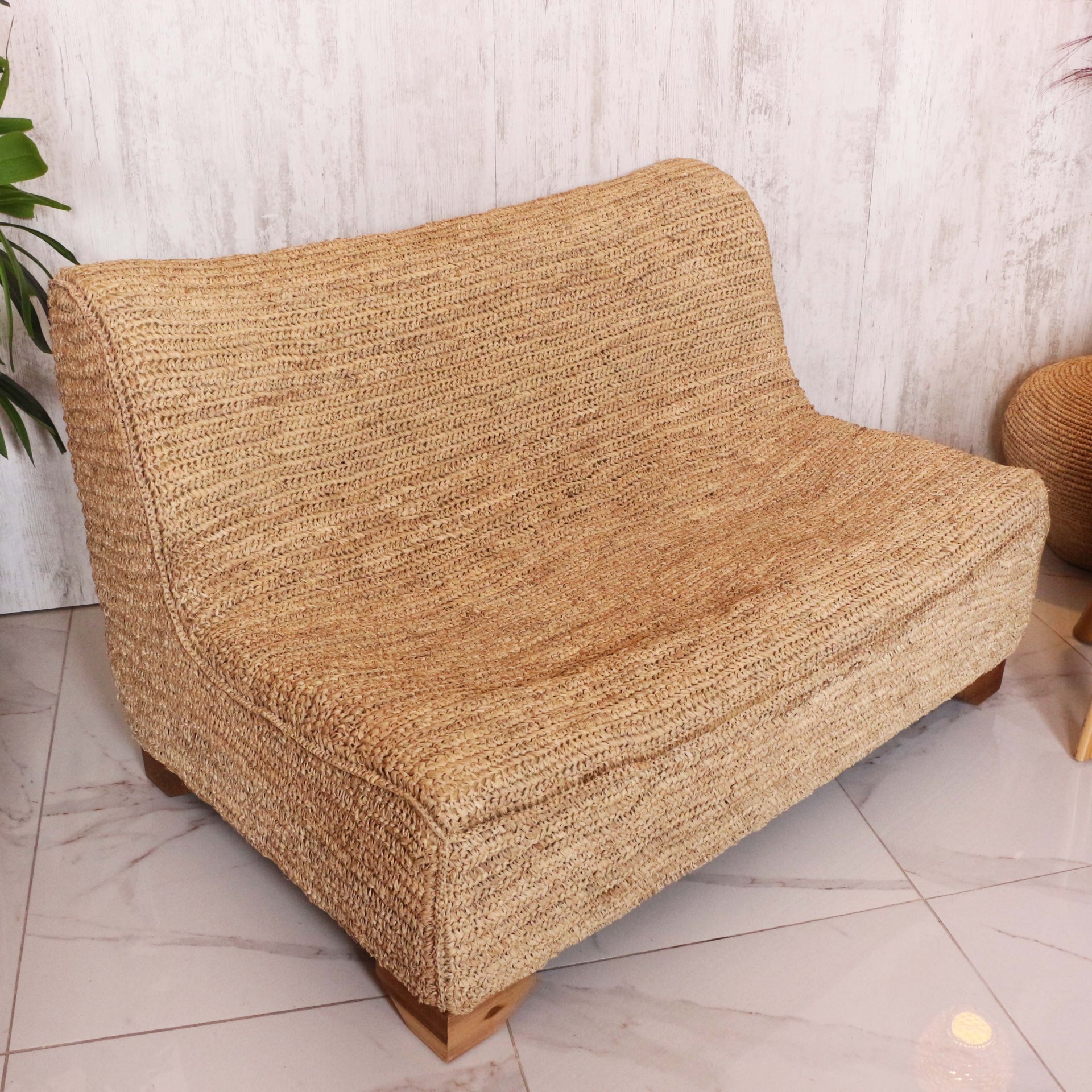 - Ürünümüz; zanaatkar ustalarımızca doğal rafyadan, maun ağacından yapılmış gövde üzerine tamamı el işçiliği ile örülmüştür. Rahat oturum için sırt ve otorum kısımları yumuşak süngerle desteklenmiştir. Son derece rahat ve konforlu bir oturumu vardır.